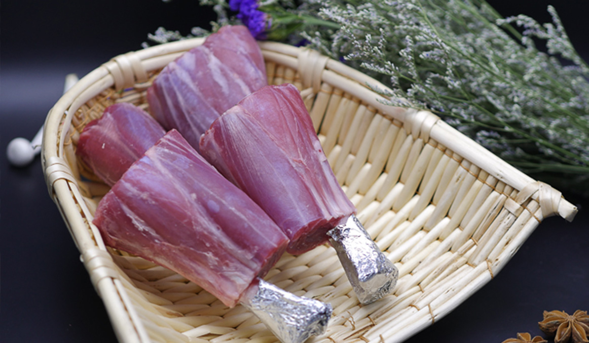 精選羔羊后腱,按西餐工藝加工而成。脂肪含量較少,肉質鮮美,咬勁十足,烤制后口味純正,適合醬鹵和西餐煎烤。