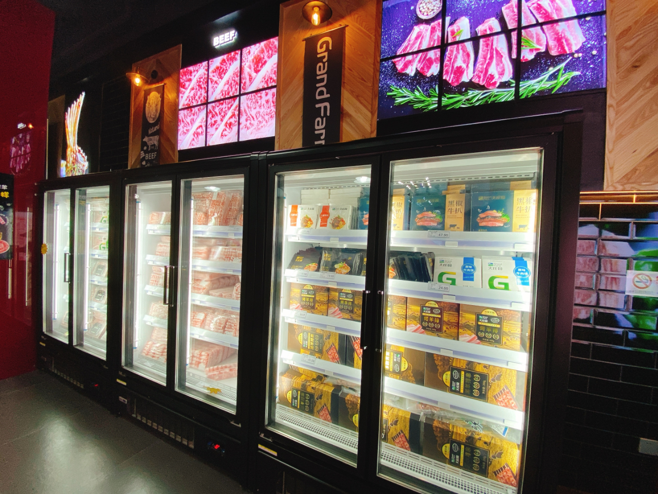 店內(nèi)不僅有新鮮現(xiàn)切的牛羊肉產(chǎn)品售賣,更有高端和牛產(chǎn)品、速烹類產(chǎn)品和阿米莉亞莊園定制紅酒。